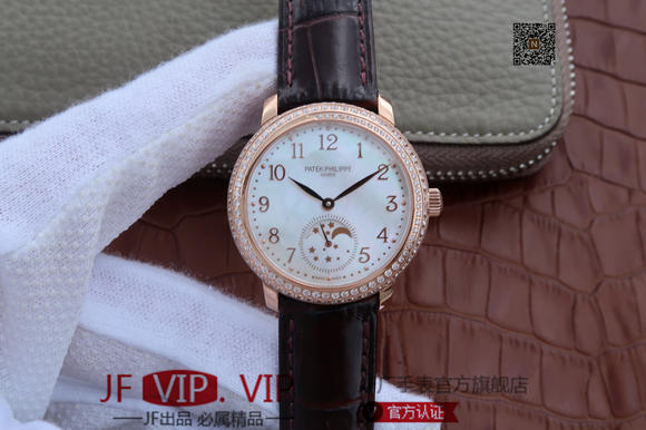 百达翡丽复杂功能系列4968女士手表。海鸥克隆组装215 PS LU手动机械机芯,33.3毫米直径,镶嵌施华洛世奇钻406