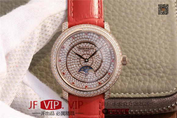 百达翡丽复杂功能系列4968女士手表。海鸥克隆组装215 PS LU手动机械机芯,33.3毫米直径,镶嵌施华洛世奇钻403